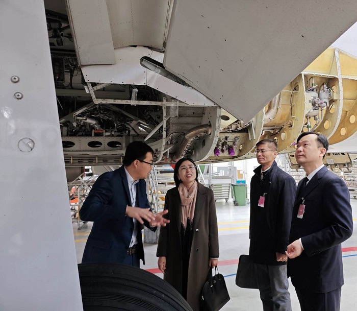 郭大使一行实地参观考察了公司的飞机维修工厂,详细了解飞机维修技术流程、公司生产经营管理以及航空服务贸易市场发展情况,对航新公司不断提升国际化运营能力、积极拓展中爱投资合作做出的努力予以肯定。郭大使表示,使馆将继续为包括航新公司在内的中资企业提供支持和服务,不断促进中爱经贸与投资合作持续健康发展。